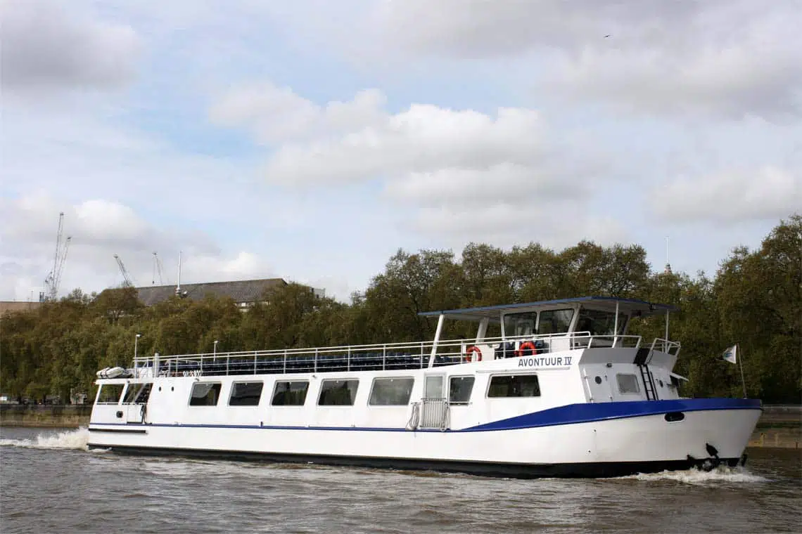 M.V London Rose joined the fleet from Regensburg, Germany in 2001 & has been completely refurbished (most recently in 2017). London Rose has enough indoor seating for 152 passengers with panoramic windows, a large open deck & smaller deck at aft. M.V Avontuur IV (Adventure IV) arrived from the Netherlands in 2005 & boasts excellent facilities for private charters including a spacious saloon, lower dance floor & one of the largest open decks on the River Thames.