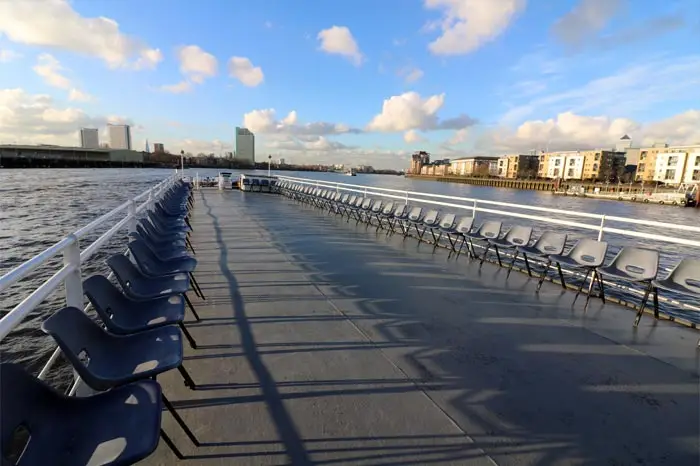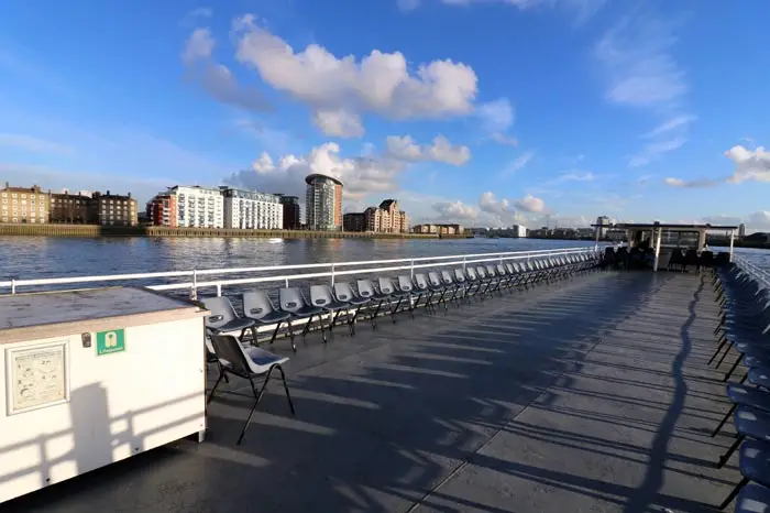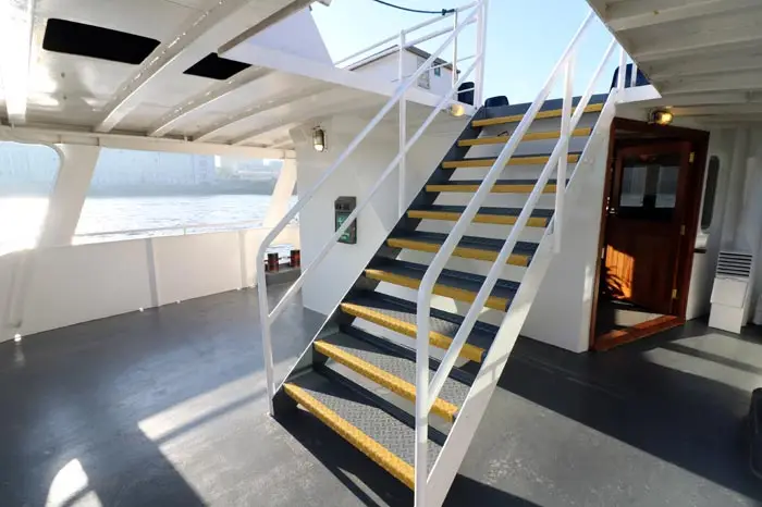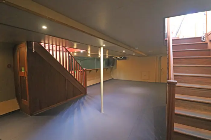 Sotto il salone si trova la pista da ballo; questa terrazza separata è dotata di postazione per il DJ, luci laser e macchina del fumo per creare l'atmosfera perfetta per la festa. L'enorme ponte superiore all'aperto è uno dei più grandi sul Tamigi e offre agli ospiti una vista a 360° sui monumenti di Londra. Il ponte superiore e il ponte di poppa più piccolo rendono Avontuur IV perfetto per crociere turistiche, eventi estivi e lanci di prodotti.